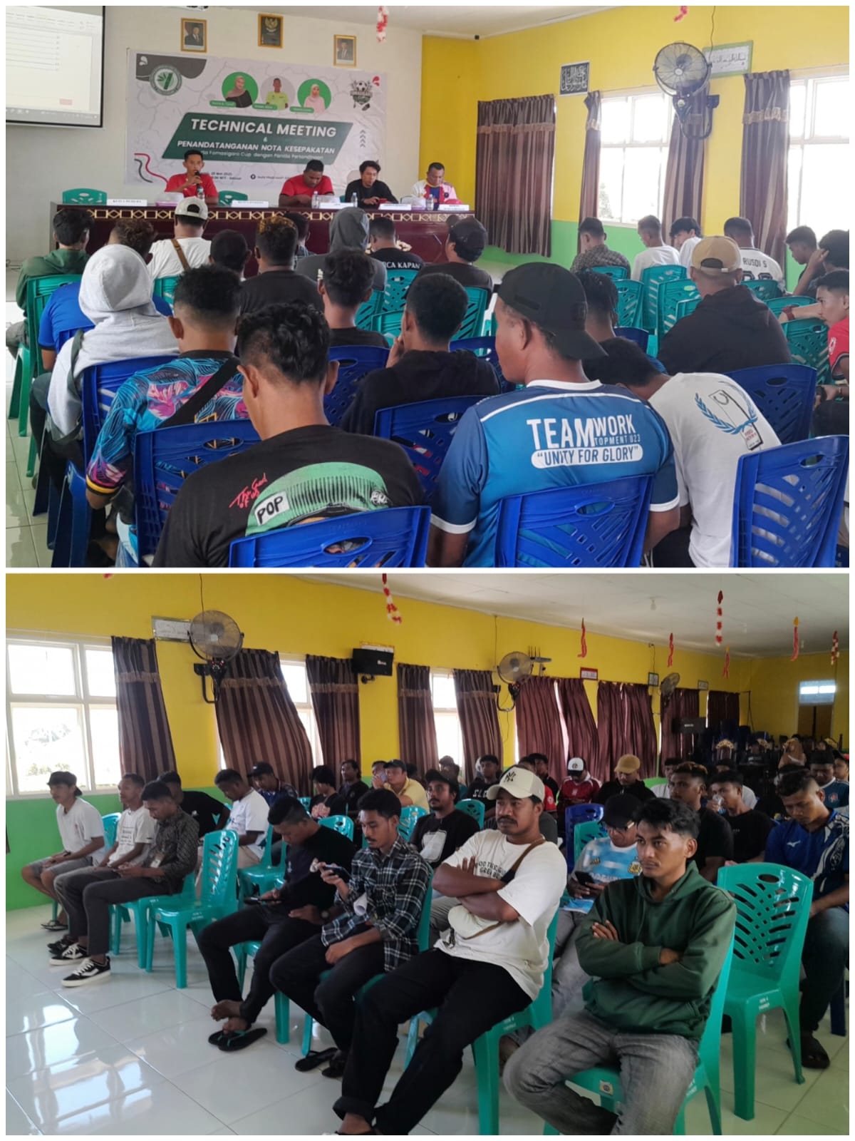 “Pagi tadi, seluruh tim hadir dalam pertemuan teknis. Setelah proses verifikasi, kami langsung menggelar sosialisasi regulasi kompetisi, pembagian pool, hingga penandatanganan nota kesepakatan,” ujar Irwan.