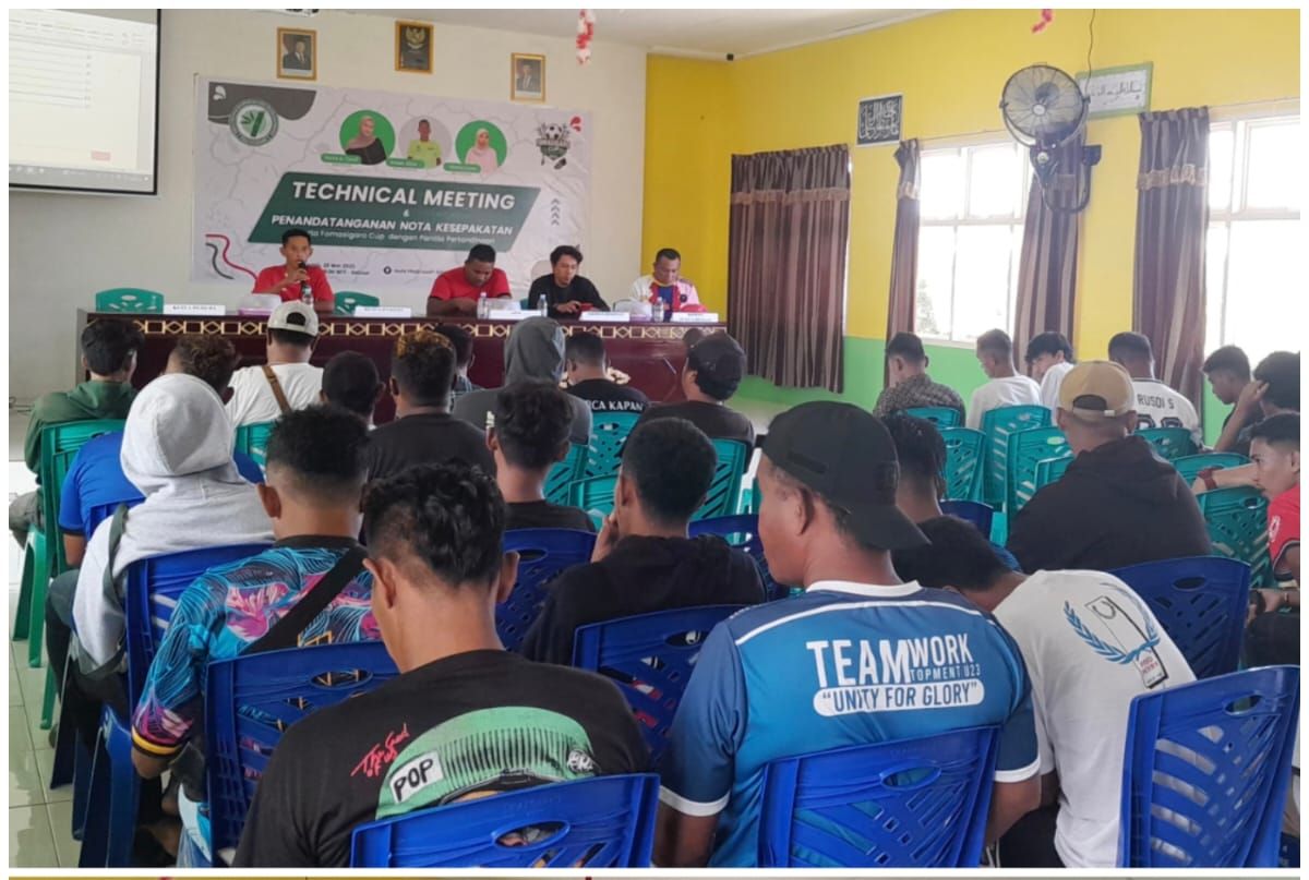 Fadulinews.com | Tidore – Sebanyak 40 tim dari berbagai kelurahan di Kecamatan Tidore Timur resmi dipastikan akan ambil bagian dalam Turnamen Fomasigaro Cup 2025. Kepastian tersebut disampaikan usai pelaksanaan technical meeting dan penandatanganan nota kesepakatan antara seluruh peserta dan panitia pelaksana pada Kamis (29/5) pagi.