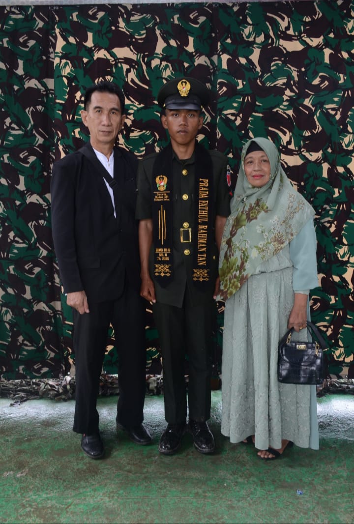 Hari ini, ia resmi menjalani pendidikan pertama di Rindam XVI Pattimura, Ambon. Sebuah momen bersejarah bagi keluarga Tan—foto kebersamaan Pak Faris, ibu, dan Fathul di tanah Ambon adalah potret nyata betapa doa, pengorbanan, dan kerja keras tidak pernah mengkhianati hasil.