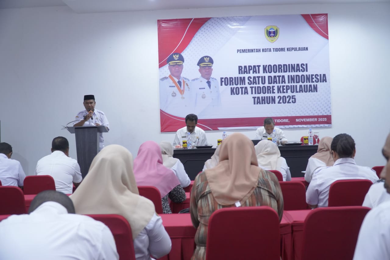 Hal tersebut disampaikan Staf Ahli Wali Kota Bidang Ekonomi, Pembangunan dan Keuangan, Abdul Hakim Adjam, saat mewakili Wali Kota Tidore Kepulauan membuka secara resmi Rapat Koordinasi (Rakor) Forum Satu Data Indonesia (SDI) Kota Tidore Kepulauan Tahun 2025, yang digelar di Tidore. Mengawali sambutan Wali Kota, Abdul Hakim menegaskan bahwa penerapan sistem Satu Data Indonesia bertujuan memberikan acuan dan pedoman dalam penyelenggaraan tata kelola data guna mendukung perencanaan, pelaksanaan, evaluasi, dan pengendalian pembangunan. Selain itu, sistem ini juga diharapkan mampu menciptakan data yang berkualitas, mudah diakses, dan dapat dibagi-pakaikan antarinstansi pemerintah, baik di tingkat pusat maupun daerah.
