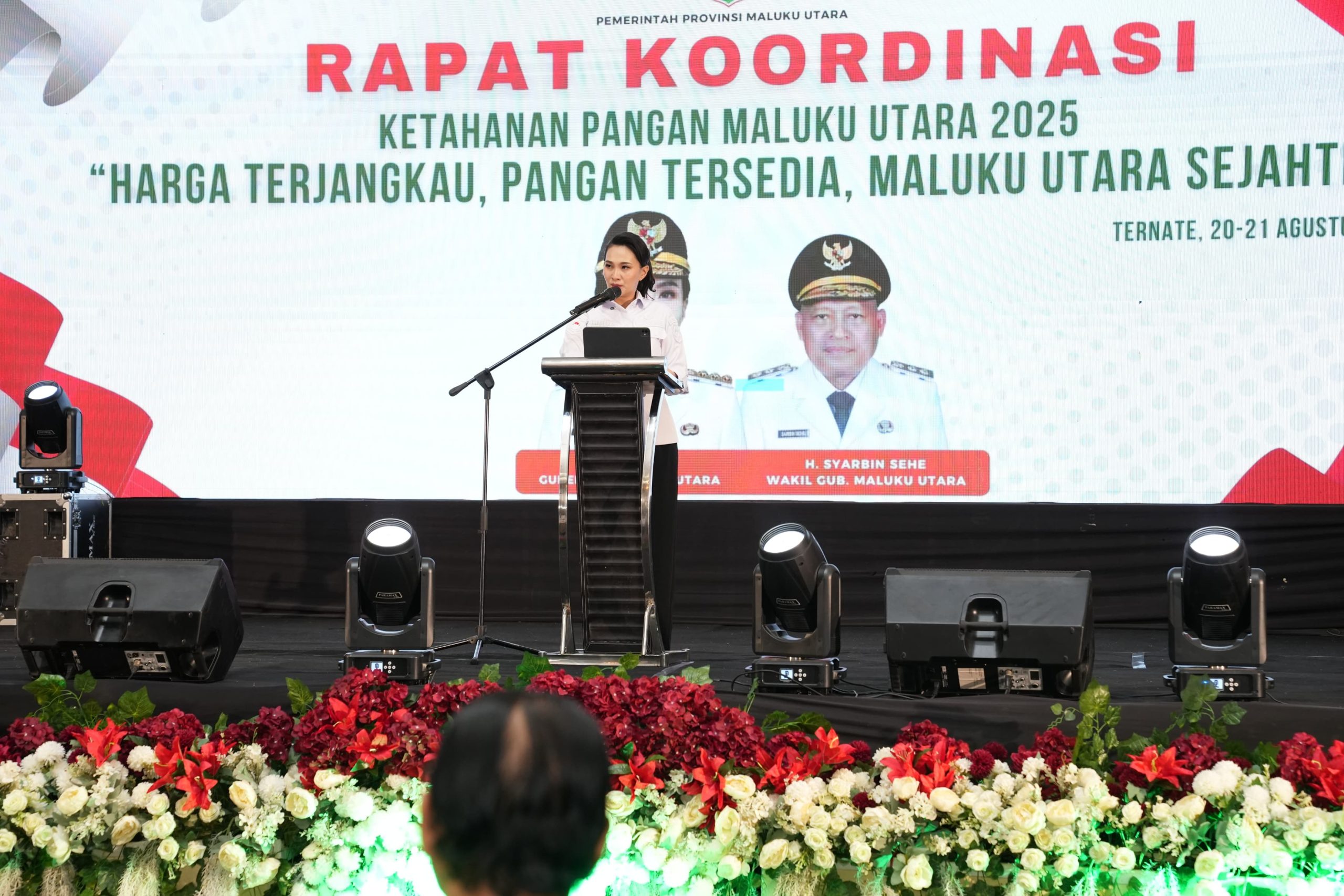 Hal tersebut disampaikan Gubernur saat membuka Rapat Koordinasi (Rakor) Ketahanan Pangan yang diselenggarakan oleh Dinas Pangan Provinsi Maluku Utara, Rabu (20/8/2025) di Bela Hotel Ternate. Kegiatan ini menghadirkan jajaran Forkopimda, para bupati dan wali kota, pimpinan OPD lingkup Pemprov Malut, hingga perwakilan kabupaten/kota. Dalam sambutannya, Sherly menekankan bahwa menjaga stabilitas pasokan pangan dan mengendalikan harga merupakan fondasi dari pembangunan ekonomi daerah. Apalagi, setiap pekan Kementerian Dalam Negeri rutin menggelar Rakor Inflasi Daerah untuk memastikan pemerintah daerah responsif terhadap isu pangan dan inflasi.