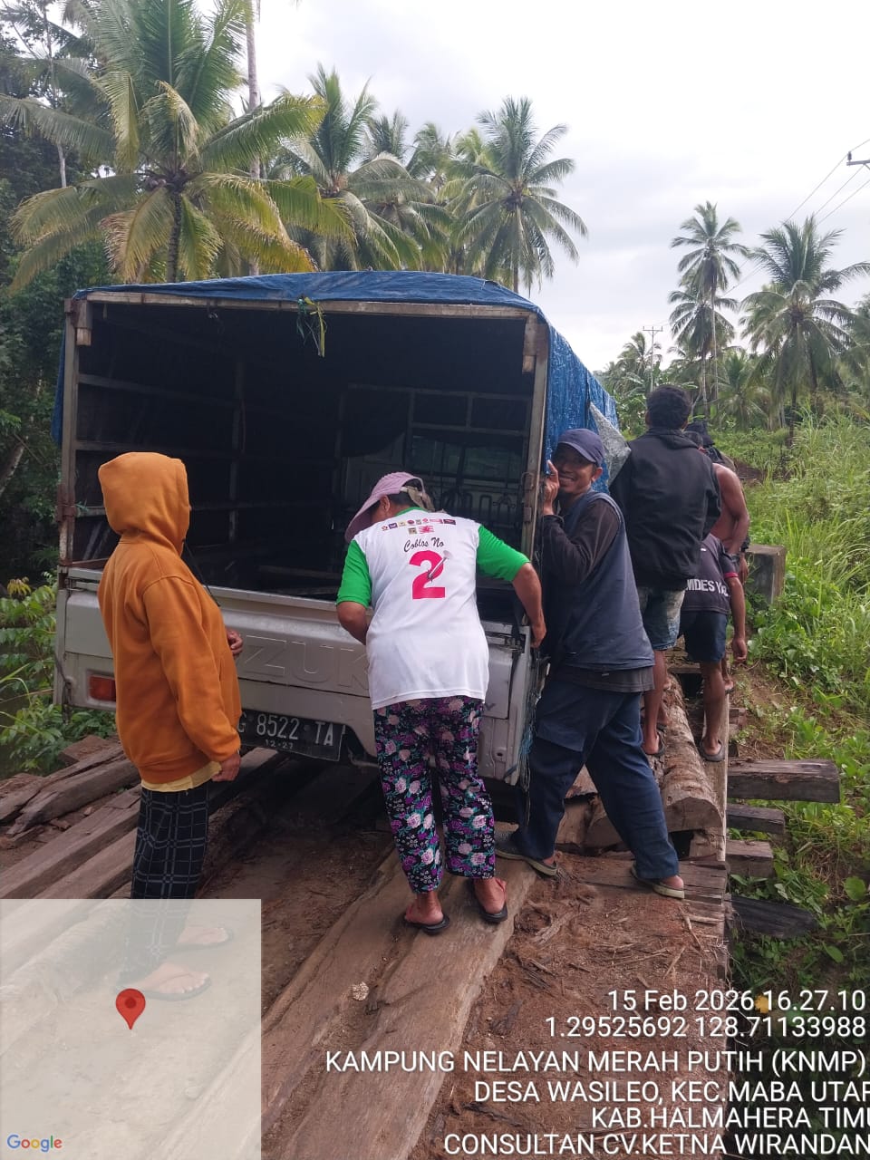 Mobil bermuatan kosong yang bergerak dari arah Desa Wasileo menuju Desa Buli itu tiba-tiba terhenti setelah salah satu papan jembatan patah saat dilintasi. Roda kendaraan terjebak di sela-sela papan, nyaris menyebabkan kerusakan serius bahkan potensi kecelakaan fatal.