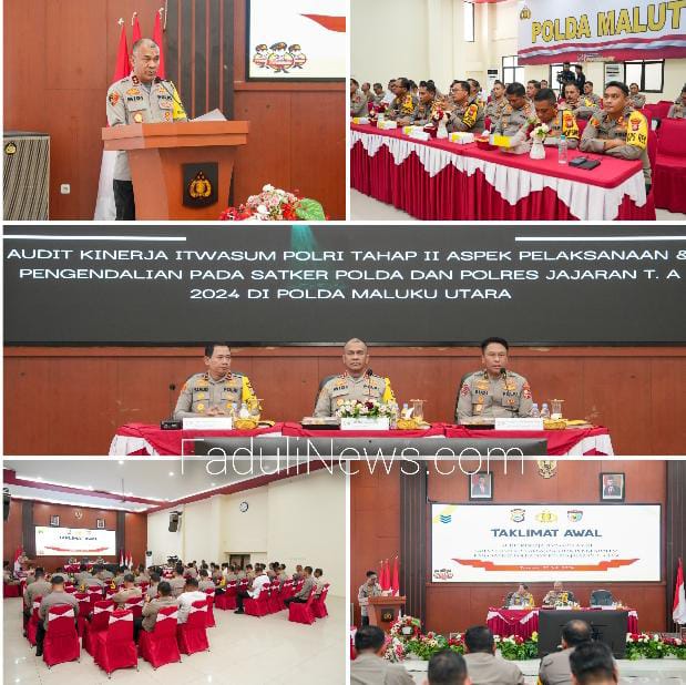 FaduliNews.com Senin (22/7/2024) – Kapolda Maluku Utara, Irjen Pol. Midi Siswoko, S.I.K., secara resmi membuka Taklimat Awal Audit Kinerja Itwasum Polri Tahap II yang berfokus pada aspek pelaksanaan dan pengendalian. Kegiatan ini berlangsung di Aula Kieraha Polda Malut.