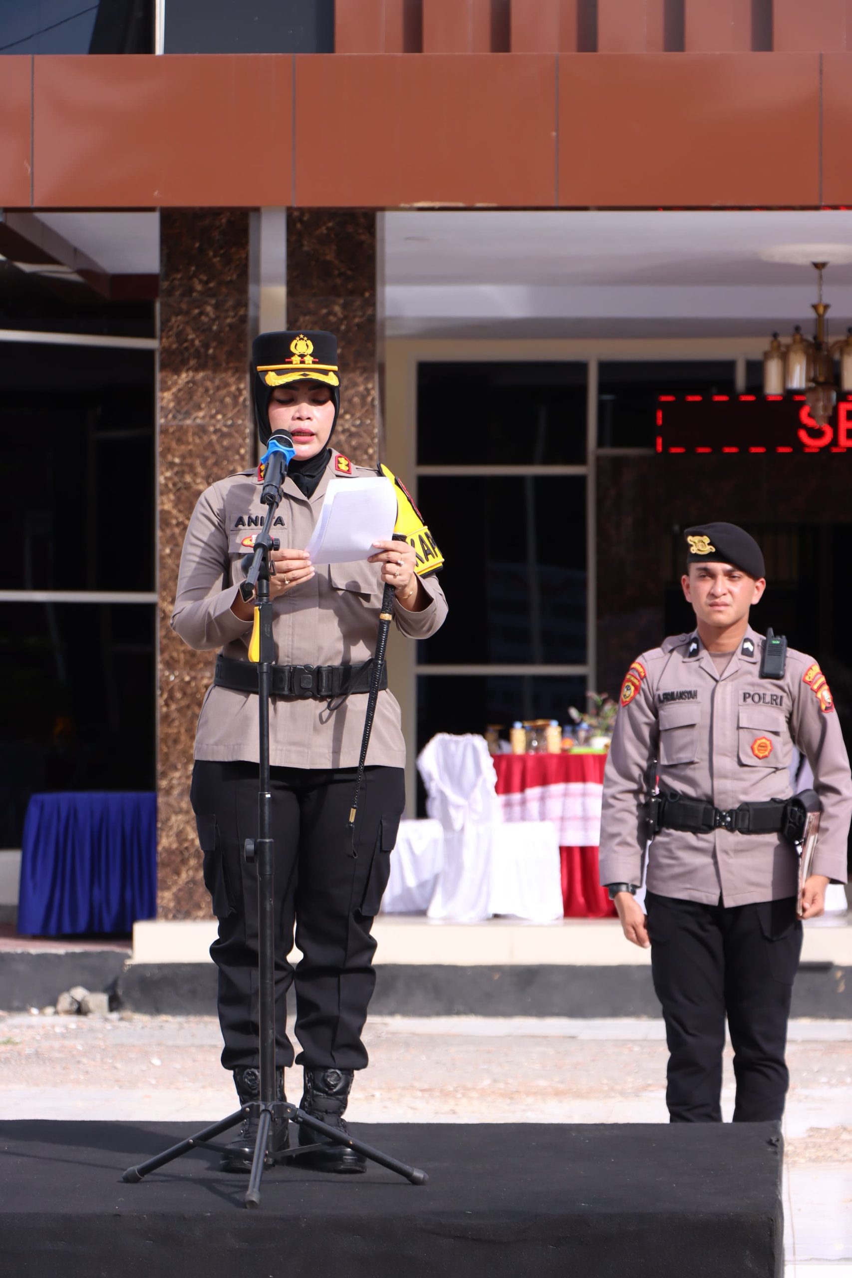 FaduliNews.com_Ternate,Kapolres Ternate, AKBP Anita Ratna Yulianto, S.I.K., M.H., memimpin langsung upacara pelantikan dan serah terima jabatan (Sertijab) sejumlah pejabat Polri di lingkungan Polres Ternate.