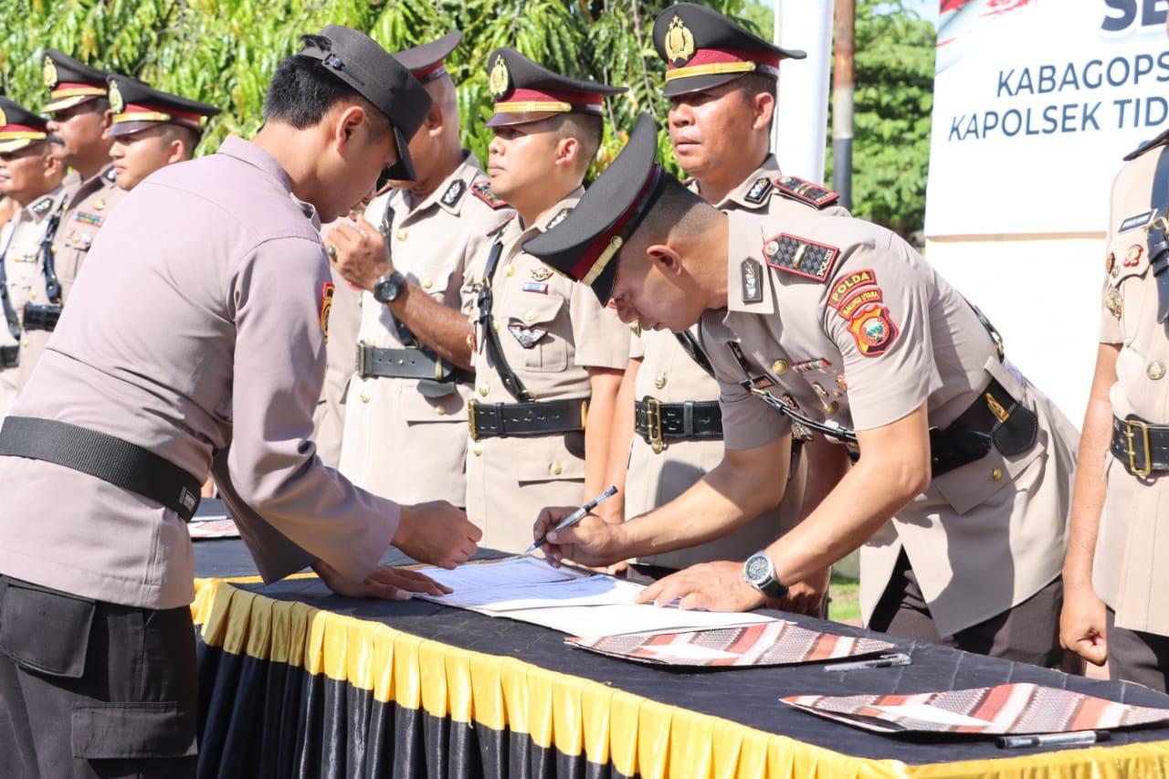 Adapun Pejabat yang melaksanakan serah terima jabatan berdasarkan Keputusan Kepala Kepolisian Daerah Maluku Utara Nomor : Kep/94/IV/2024 tentang Pemberhentian dan Pengangkatan dalam Jabatan Lingkungan Polda Maluku Utara yakni KOMPOL N Daniel Maribunga,S.Pd Jabatan Lama Kabag Ops Polresta Tidore Polda Maluku Utara, Jabatan Baru Kabag SDM Polres Halmahera Barat Polda Maluku Utara, KOMPOL Muh. Jufri Dukomalamo Jabatan Lama Kabagselek Bagdalpers Ro SDM Polda Maluku Utara, Jabatan Baru Kabag Ops Polresta Tidore Polda Maluku Utara, AKP Riyan Purmana Putra,S.I.K.,Jabatan Lama Kasat Reskrim Polresta Tudore Polda Maluku Utara, Jabatan Baru Kanit 2 Subdit 2 Ditreskrimum Polda Maluku Utara, AKP Indah Fitria Dewi.,S.I.K.,Jabatan Lama Kasat Binmas Polres Halmahera Tengah Polda Maluku Utara, Jabatan Baru PS.Kasat Lantas Polresta Tidore Polda Maluku Utara, AKP Ridwan Usman,S.H., M.H., Jabatan Lama PS.Kasat Lantas Polresta Tidore Polda Maluku Utara, Jabatan Baru Kasat Lanatas Polres Halmahera Timur Polda Maluku Utara, AKP Sidik Hadi Suwito,S.I.K., Jabatan Lama Kasi Laka Subditgakum Ditlantas Polda Maluku Utara, Jabatan Baru Kasat Lantas Polresta Tidore Polda Maluku Utara, IPTU Samsir Usman Jabatan Lama PS.Kapolsek Oba Polresta Tidore Polda Maluku Utara, Jabatan Baru PS.Kasat Binmas Polres Halmahera Tengah Polda Maluku Utara, IPDA Muis Ode Amran,S.H., Jabatan Lama PS.Kapolsek Tidore Utara Polresta Tidore Polda Maluku Utara, Jabatan Baru PS.Kapolsek Oba Polresta Tidore Polda Maluku Utara, IPDA Apriyanto Sukardi, S.I.P., Jabatan Lama Pama Polresta Tidore Polda Maluku Utara, Jabatan Baru PS.Kapolsek Tidore Utara Polresta Tidore Polda Maluku Utara.