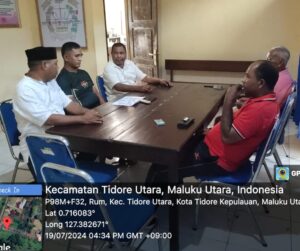 TIDORE-FN,/19/Juli 2024- Bertempat di Aula Polsek Tidore Utara, pada hari Jumat tanggal 19 Juli 2024 pukul 15.30 WIT, Kapolsek Tidore Utara, Ipda Aprianto Sukardi, S.IP., M.Si., mengadakan rapat koordinasi dengan Camat Tidore Utara, Lurah Kelurahan Rum, dan tokoh masyarakat Kelurahan Rum. Rapat tersebut membahas persiapan deklarasi anti narkoba dan miras di Kelurahan Rum dan Kelurahan Rum Balibunga.