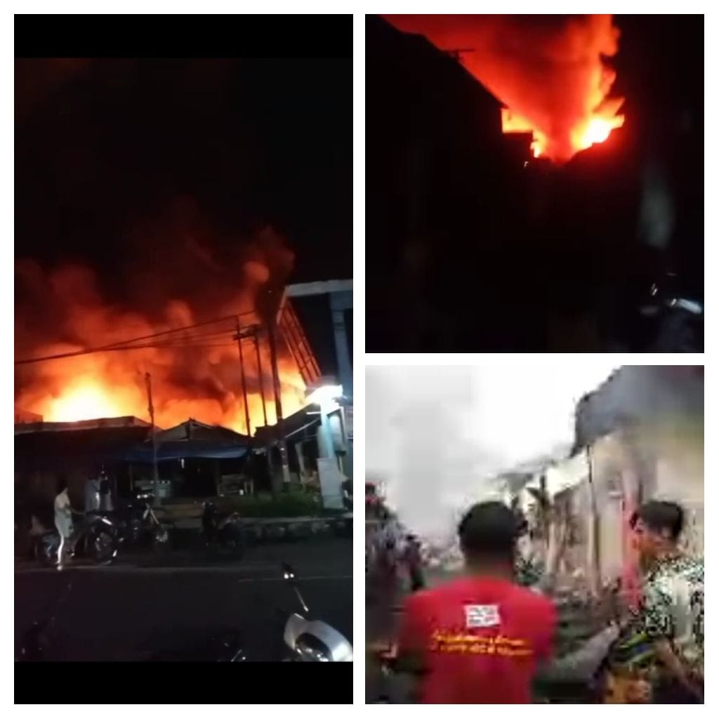 FaduliNews.com_ Halmahera Utara, 9 April 2025 — Ketenangan pagi di Desa Rawajaya, Kecamatan Tobelo, Kabupaten Halmahera Utara, mendadak pecah oleh kobaran api yang melanda area sekitar Pasar Rawajaya pada pukul 05.00 WIT. Insiden ini membuat warga panik dan segera berupaya menyelamatkan diri serta barang-barang berharga yang masih bisa diselamatkan.