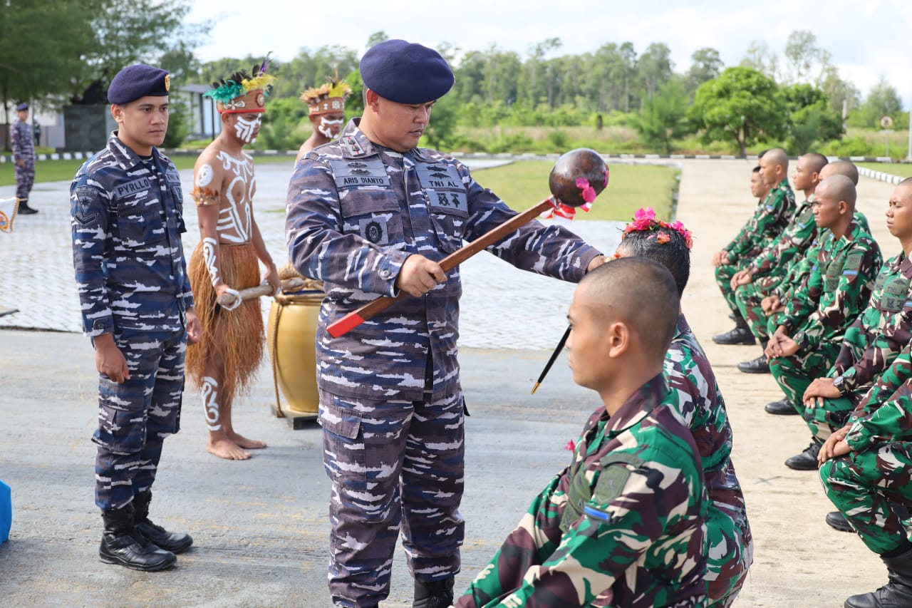 FaduliNews.com_Kabupaten Sorong PBD – Komando Armada III menggelar Upacara Tradisi Penyambutan Prajurit Remaja yang terdiri dari 5 Perwira Remaja dan 42 Tamtama Remaja di Lapangan Apel depan Mako Armada III pada Senin (17/3/2025). Komandan Dentasemen Markas (Dandenma) Koarmada III Letkol Laut (P) Aris Dianto, M.Han., CTMP.,bertindak sebagai Inspektur Upacara berikan Empat Arahan Khusus kepada Prajurit Remaja.