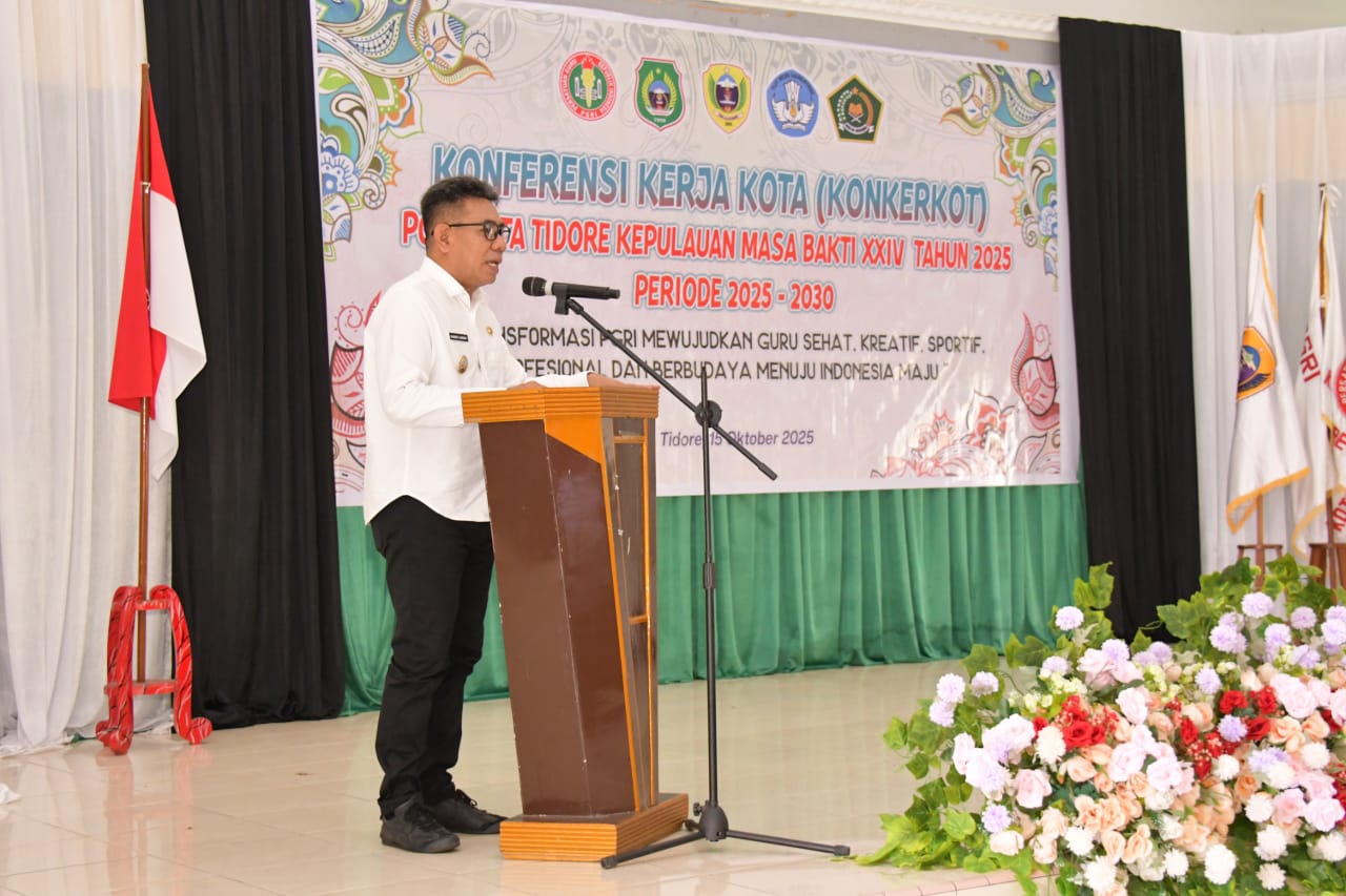 Hal tersebut disampaikan Wakil Wali Kota Tidore Kepulauan, Ahmad Laiman, saat membuka secara resmi Konferensi Kerja Kota (KONKERKOT) Persatuan Guru Republik Indonesia (PGRI) Kota Tidore Kepulauan masa bakti XXIV periode 2025–2030, yang berlangsung di Aula SMAN 1 Tidore, Rabu (15/10/2025).