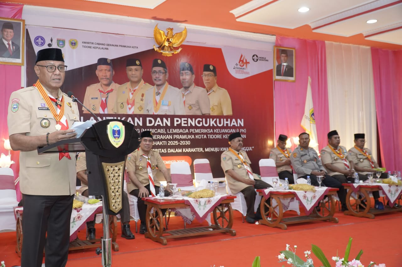 Dalam sambutannya, Ketua Mabicab sekaligus Wali Kota Tidore Kepulauan Muhammad Sinen menegaskan pentingnya Gerakan Pramuka sebagai wadah pembentukan karakter, agen perubahan, serta mitra strategis pemerintah dalam membangun generasi berakhlak dan berjiwa Pancasila.