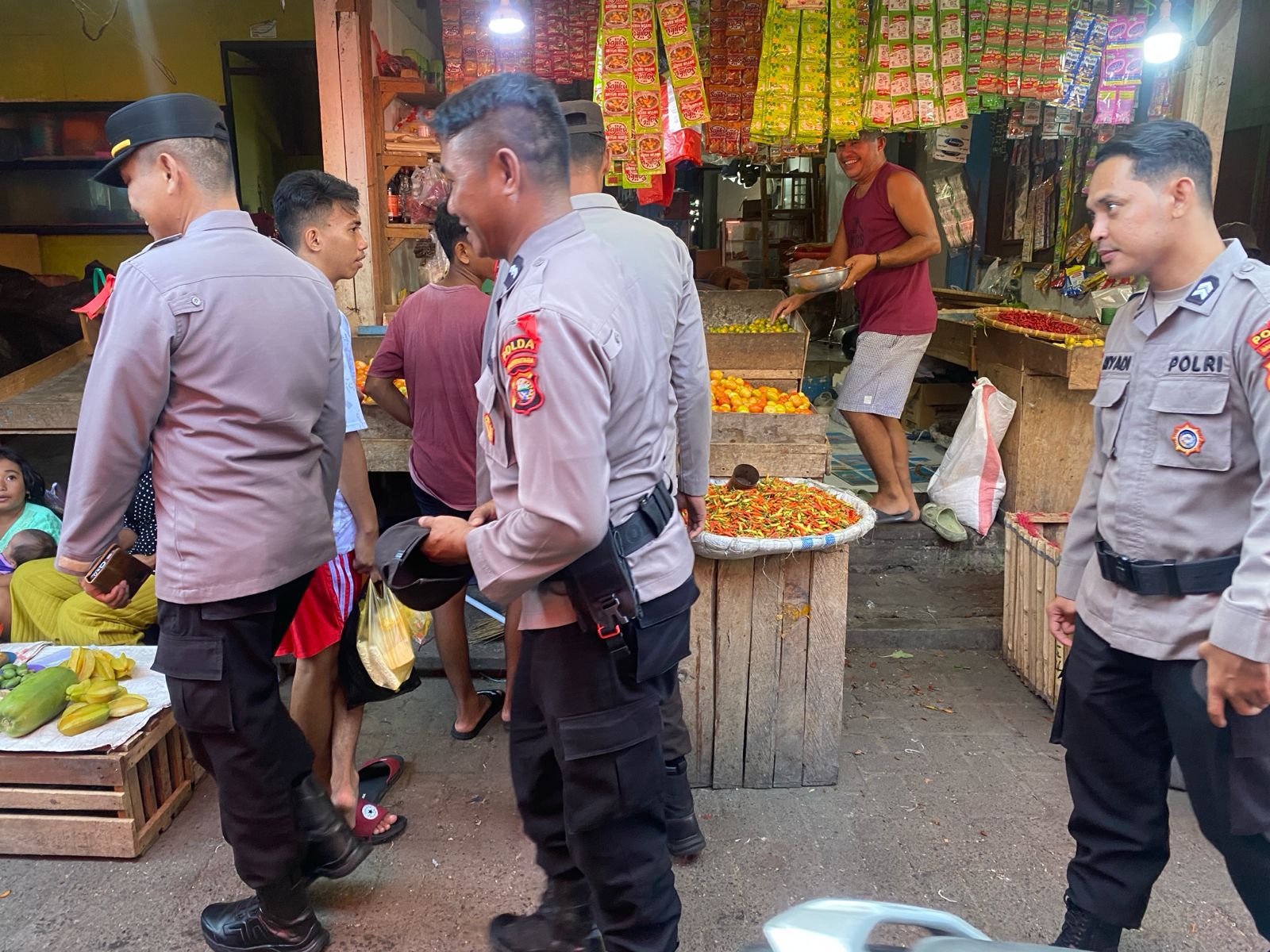 Kehadiran anggota kepolisian di pasar-pasar tersebut diharapkan dapat memberikan rasa aman kepada para pedagang dan pengunjung.dalam pelaksanaan patroli, anggota Dit Binmas Polda Malut berinteraksi langsung dengan masyarakat.