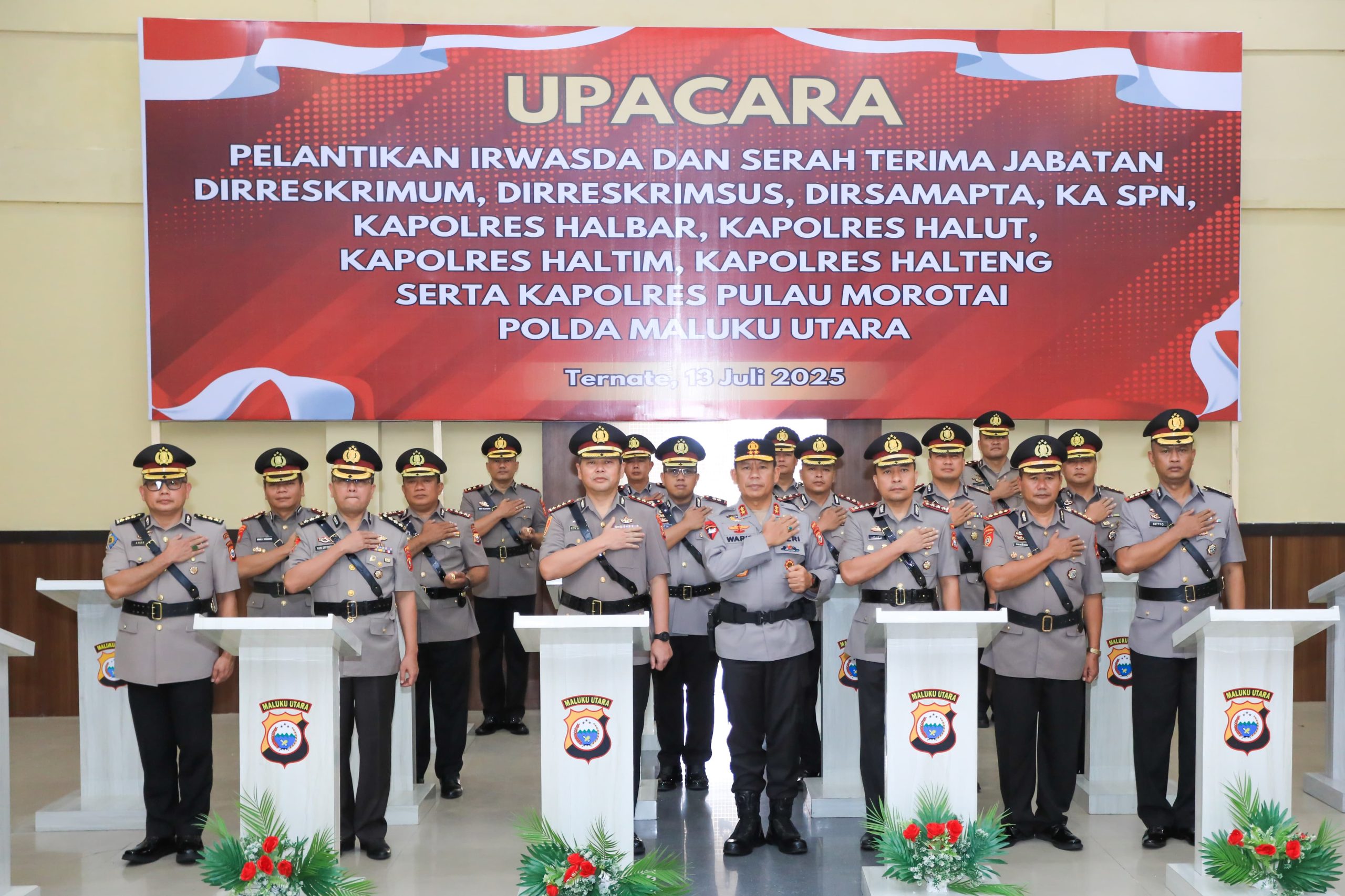 Fadulinews – Kapolda Maluku Utara, Irjen Pol. Drs. Waris Agono, M.Si, memimpin langsung upacara serah terima jabatan (sertijab) sejumlah pejabat utama dan Kapolres di jajaran Polda Maluku Utara. Kegiatan berlangsung di aula Mapolres Ternate, Minggu (13/7/2025).
