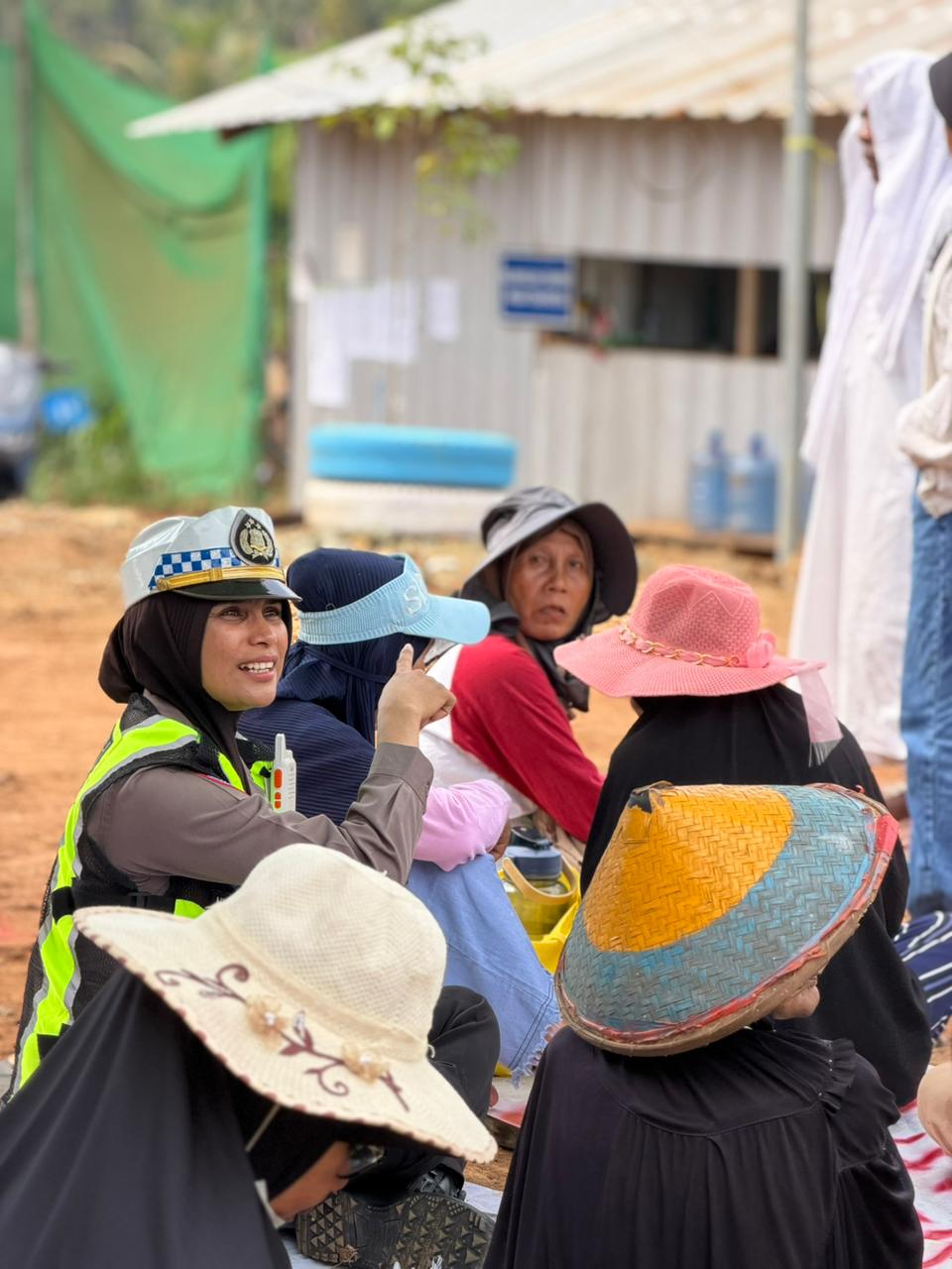 Dalam suasana yang santai namun tetap menjalankan tugas, Iptu Masqun duduk bersama warga dan berbincang secara langsung. Pendekatan humanis itu dilakukan sebagai upaya membangun komunikasi yang baik serta menjaga situasi tetap kondusif selama aksi berlangsung.