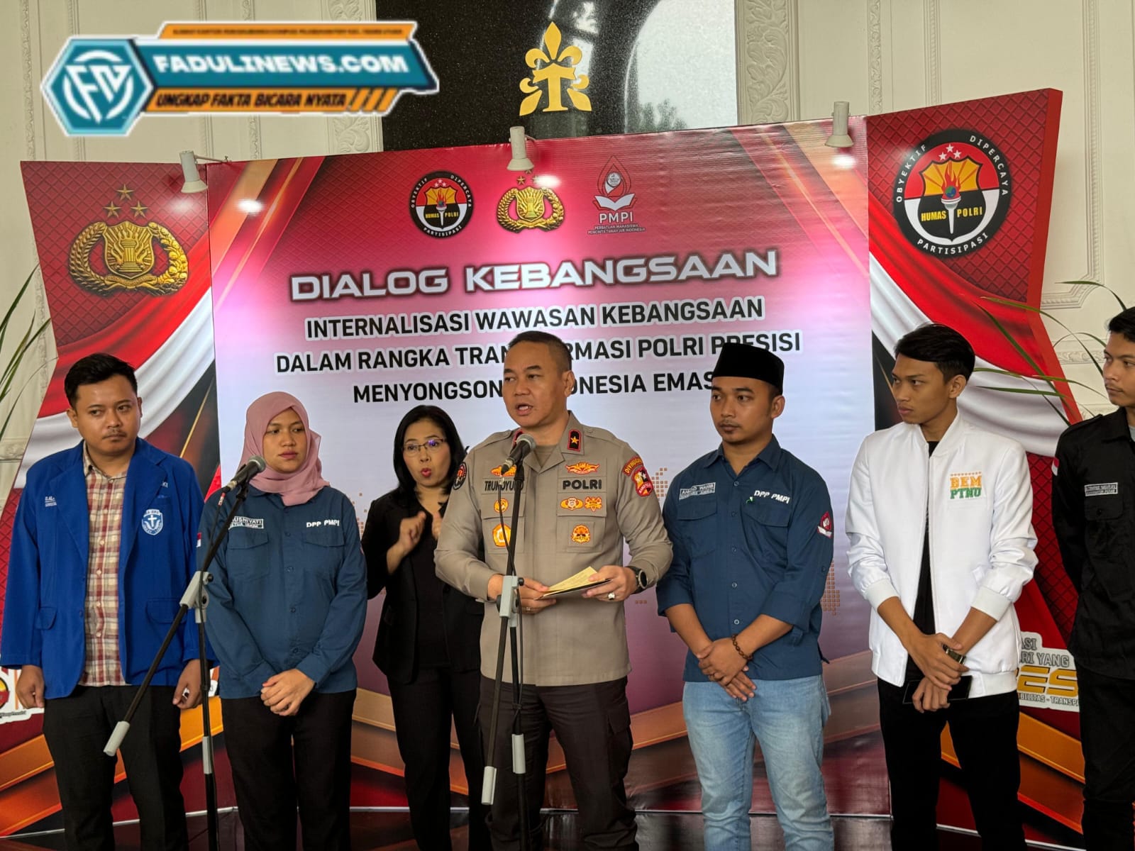 Jakarta–FN,Senin/10-06-2024 Divisi Humas Polri bersama Persatuan Mahasiswa Pecinta Tanah Air Indonesia (PMPI) menggelar dialog kebangsaan ‘Internalisasi Wawasan Dalam Rangka Transformasi Polri Presisi Menyongsong Indonesia Emas 2045’ ini di The Tribrata Dharmawangsa, Jakarta, Senin (10/6/2024).