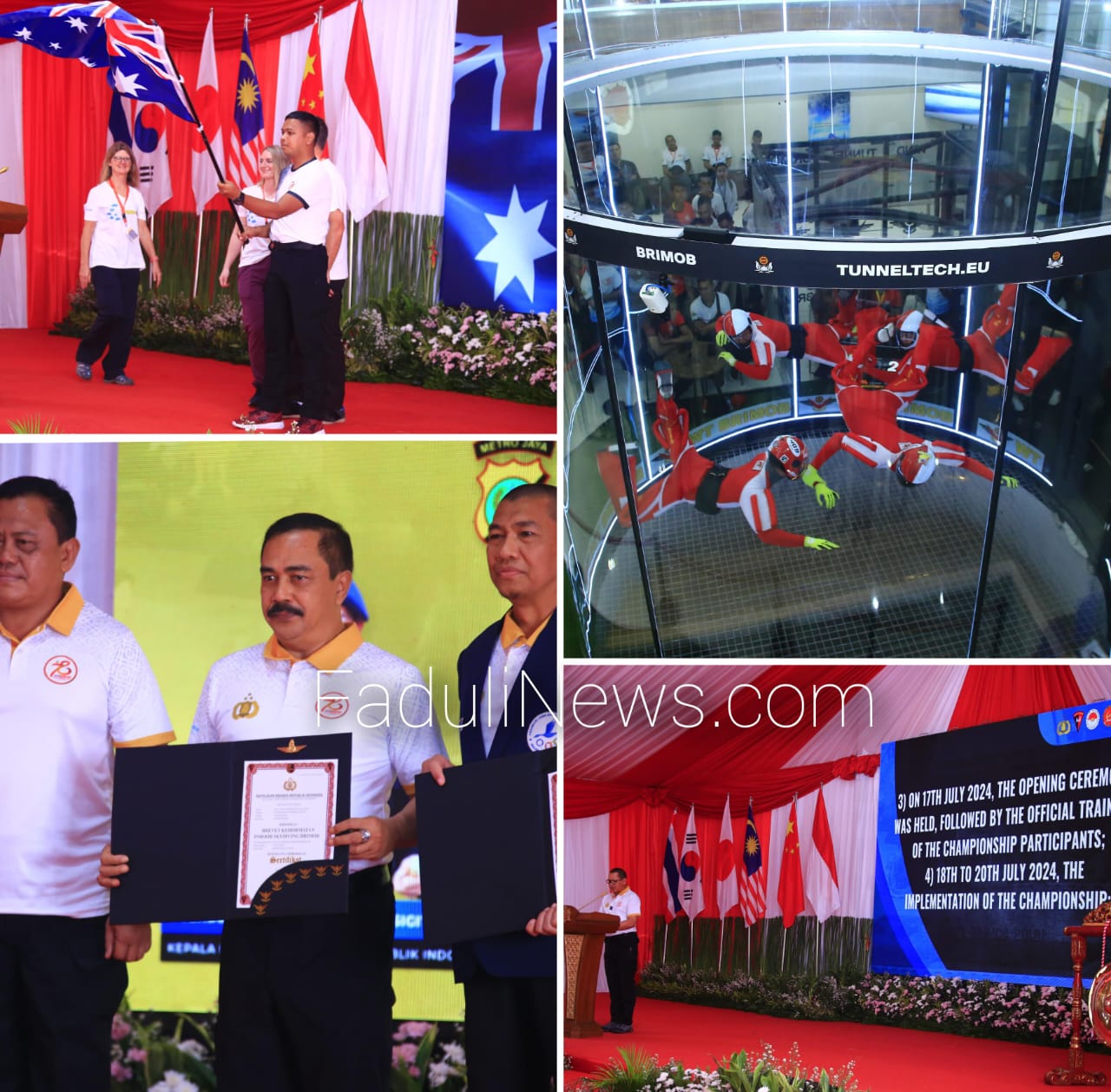 BOGOR-FN,Kamis/18/07/2024 Wakapolri Komjen Pol Agus Andrianto membuka kejuaraan Internasional Open Indoor Skydiving Kapolri Cup 2024 dalam rangka Hari Bhayangkara ke-78. Acara ini digelar selama 5 hari mulai dari tanggal 17-21 Juli 2024 di Gedung Soemardhi Wind Tunnel Brimob Polri Cikeas, Jawa Barat.