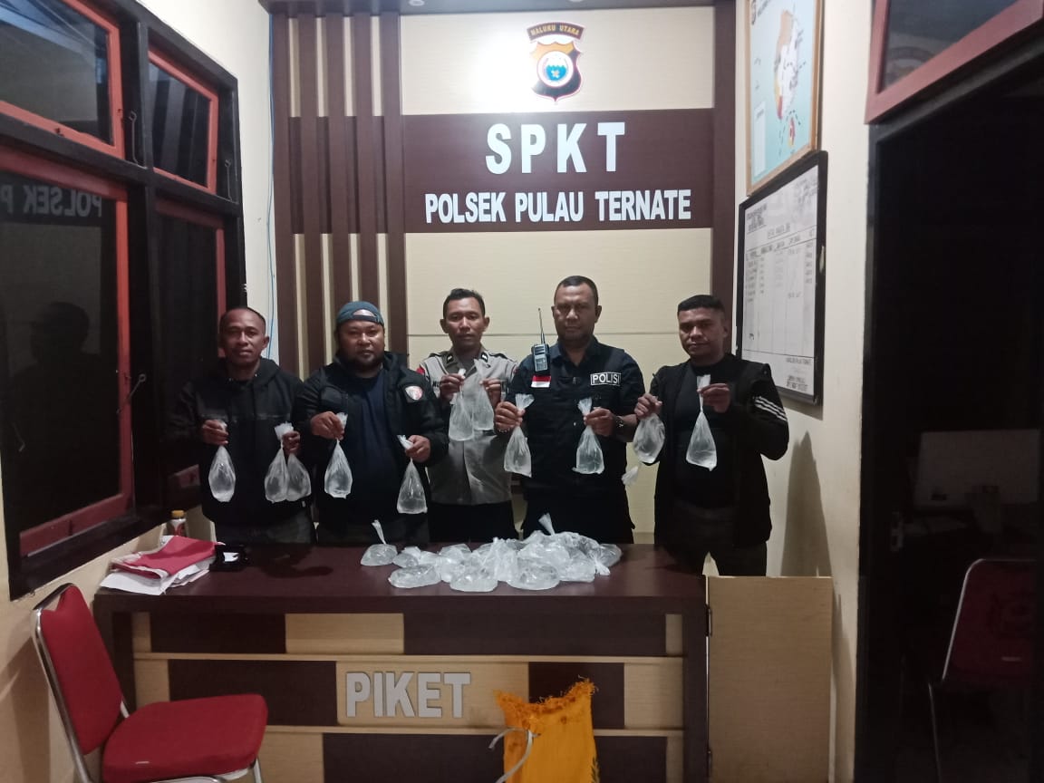 Barang bukti tersebut langsung diamankan dan dibawa ke Polsek Pulau Ternate untuk proses penyelidikan lebih lanjut.