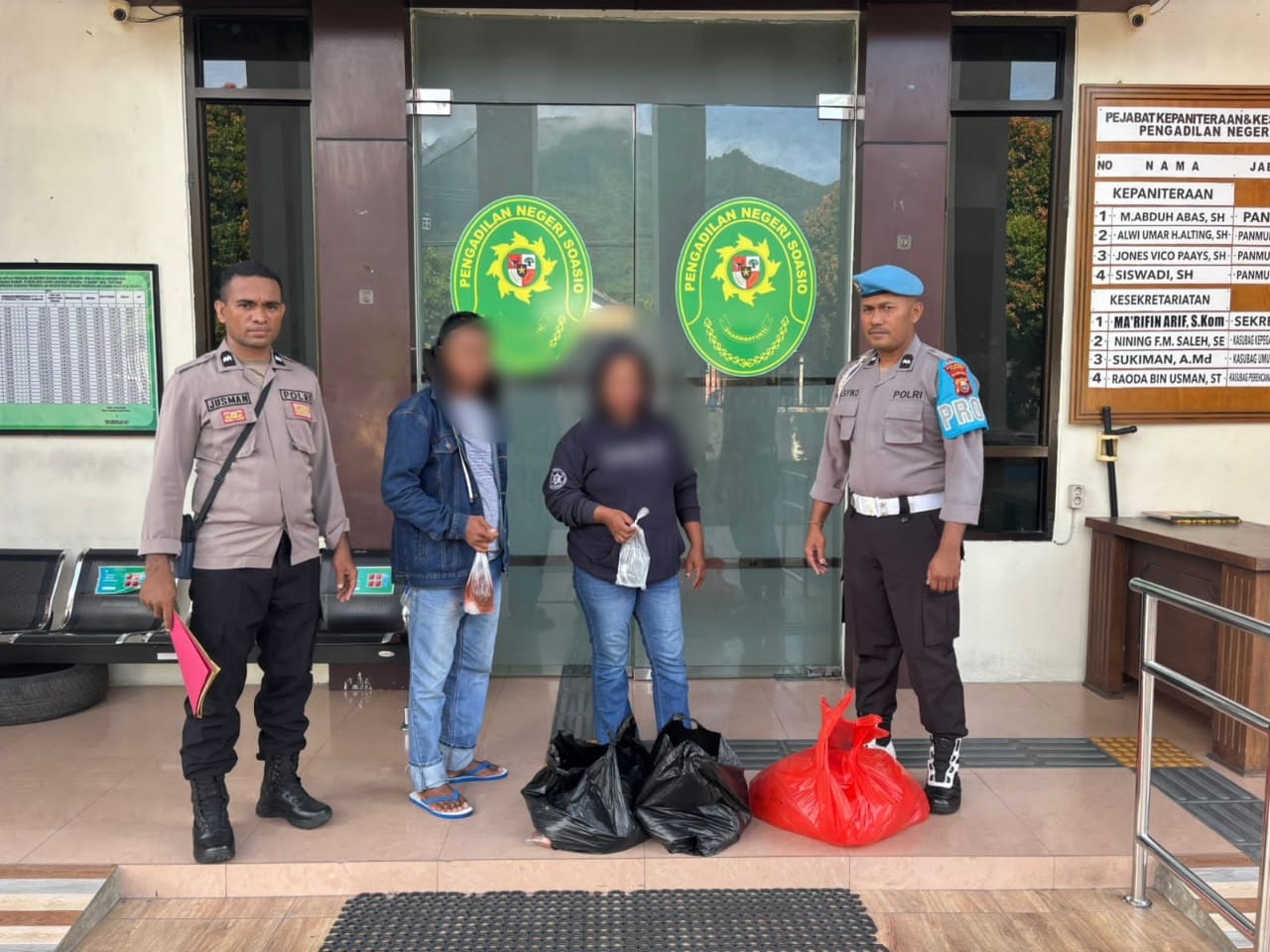 FaduliNews_Unit Samapta Polsek Tidore melaksanakan sidang tindak pidana ringan (tipiring) terhadap pelanggaran peredaran minuman keras (miras) jenis cap tikus di Kantor Pengadilan Negeri Soasio, Selasa (04/11/2025).