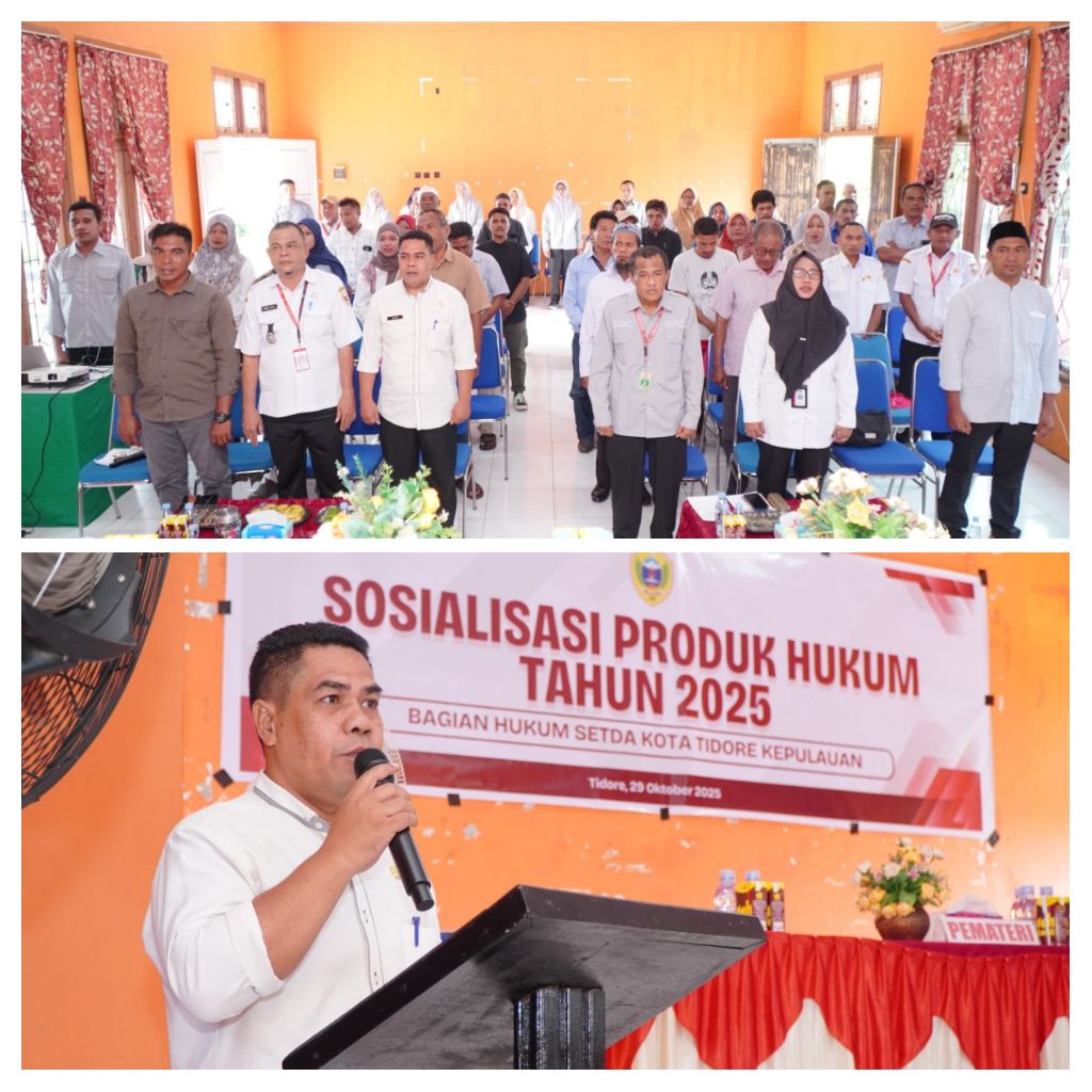 Fadulinews.com | Tidore, 29 Oktober 2025 – Sebanyak 60 peserta yang terdiri dari tokoh agama, tokoh masyarakat, tokoh pemuda, dan tokoh perempuan di Kecamatan Tidore Selatan mengikuti Sosialisasi Produk Hukum yang digelar oleh Bagian Hukum Sekretariat Daerah Kota Tidore Kepulauan. Kegiatan ini dibuka secara resmi oleh Staf Ahli Wali Kota Bidang Politik, Hukum, dan Pemerintahan, Asis Hadad, mewakili Wali Kota Tidore Kepulauan, bertempat di Aula Kantor Camat Tidore Selatan, Selasa (29/10/2025).