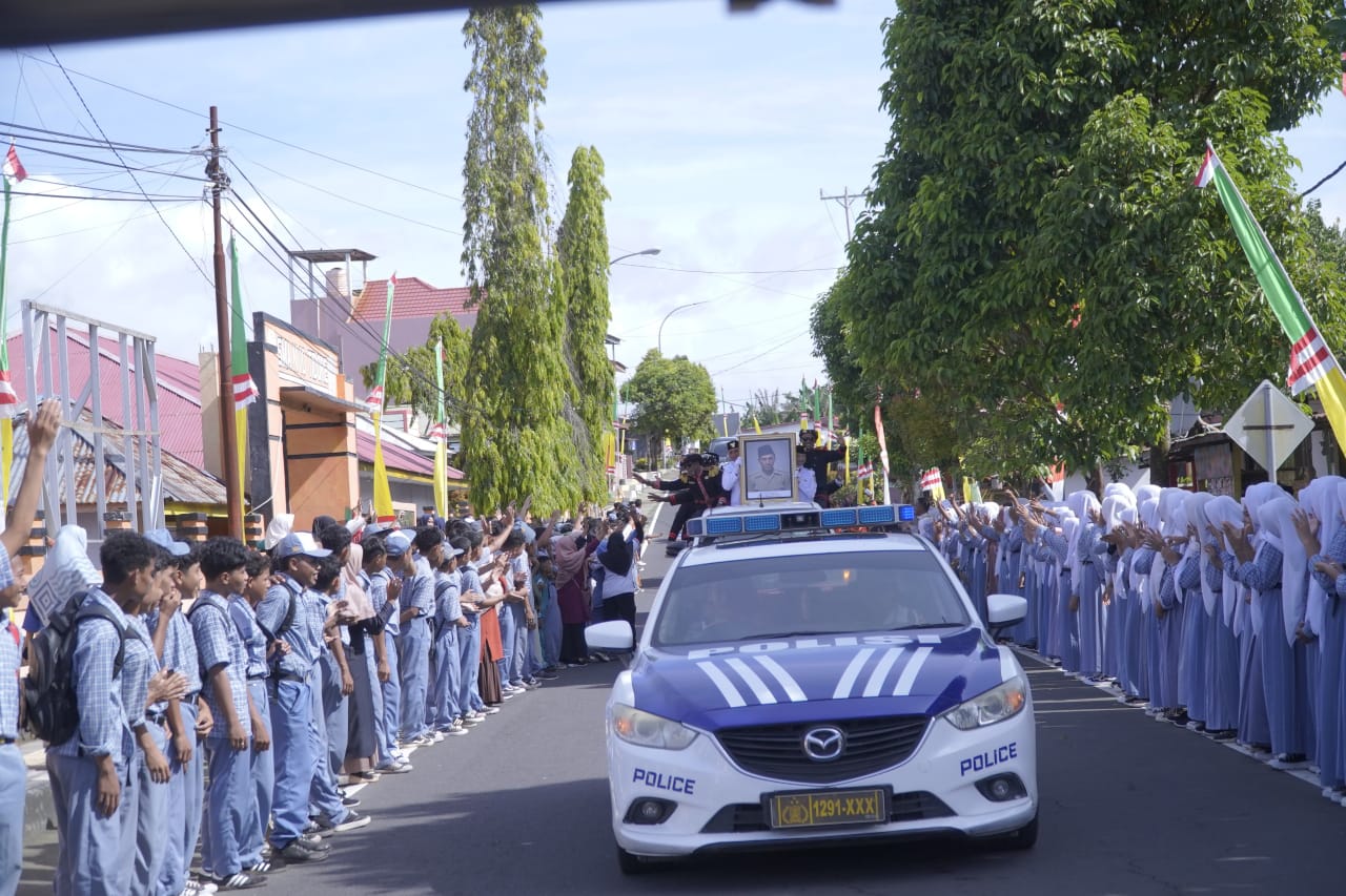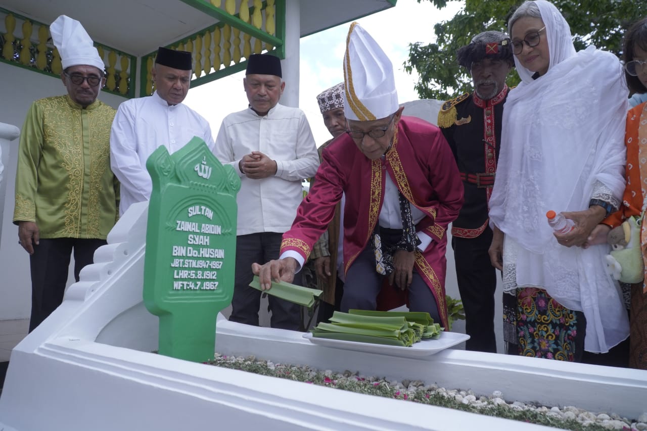 FaduliNews_Suasana haru dan penuh suka cita menyelimuti arak-arakan penyambutan gelar kehormatan Pahlawan Nasional Sultan Zainal Abidin Syah yang diberikan oleh Presiden Republik Indonesia Prabowo Subianto pada tanggal 10 November 2025 bertepatan dengan Hari Pahlawan, gelar kehormatan tersebut diantar langsung oleh Ahli Waris Anak Sulung Sang Sultan Prof. Mahmud Arifin Raimadoya bersama adiknya Kamelia Sadnawi, Kamis (20/11/2025).